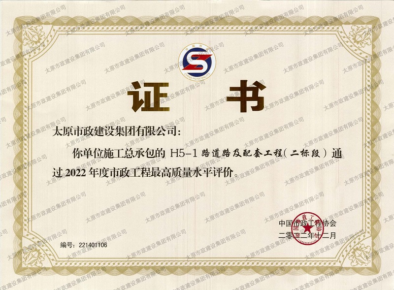 資質證書 營業(yè)執(zhí)照 2022年度市政工程最高質量水平評價_H5-1路道路及配套工程(二標段) 2022年度工程建設誠信典型企業(yè) 中國施工企業(yè)管理協會_AAA級企業(yè)信用等級 2022年度全國市政工程建設優(yōu)秀質量管理小組三等獎_''核動力QC小組”提高瀝青路面壓實度合格率”